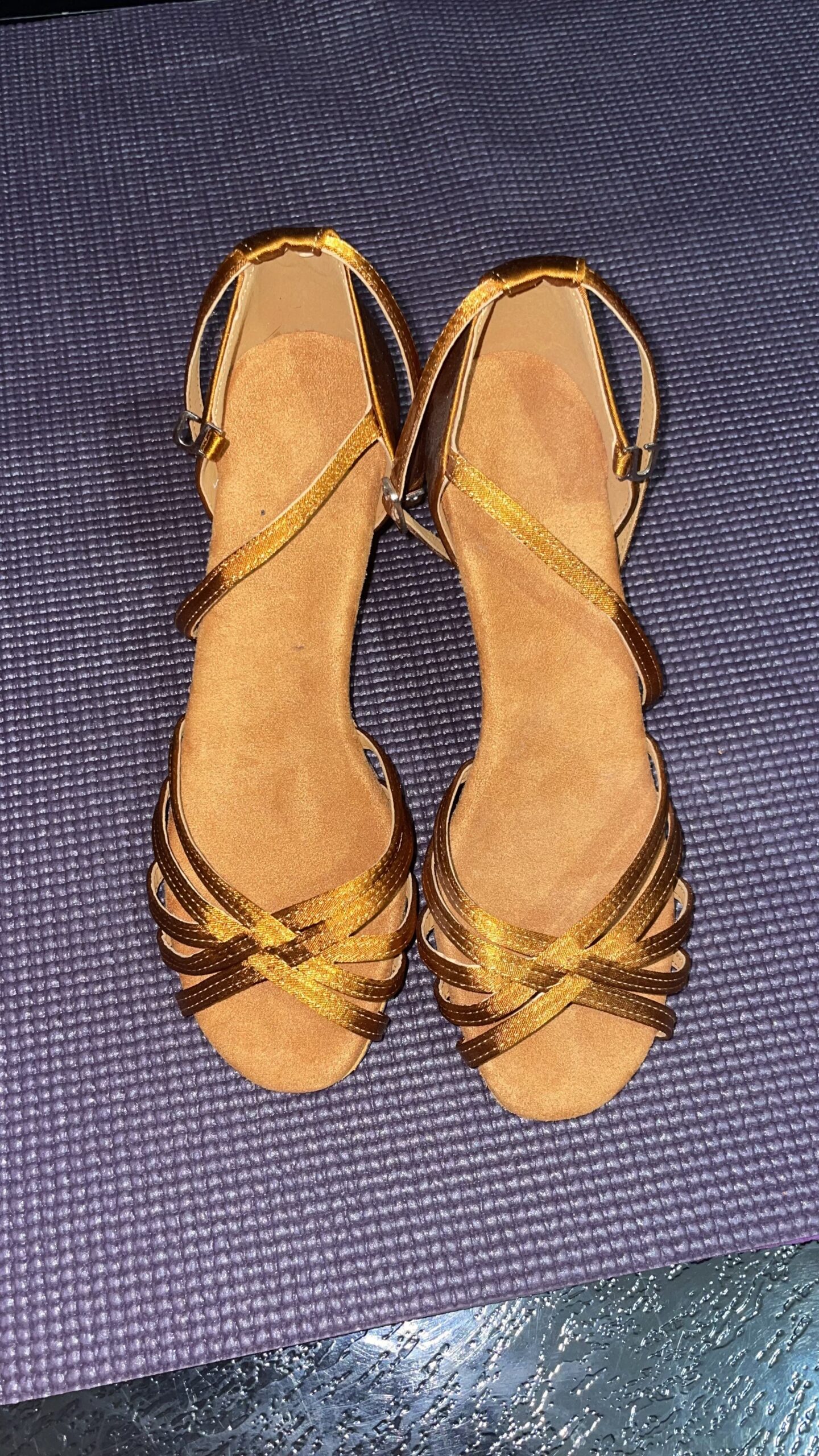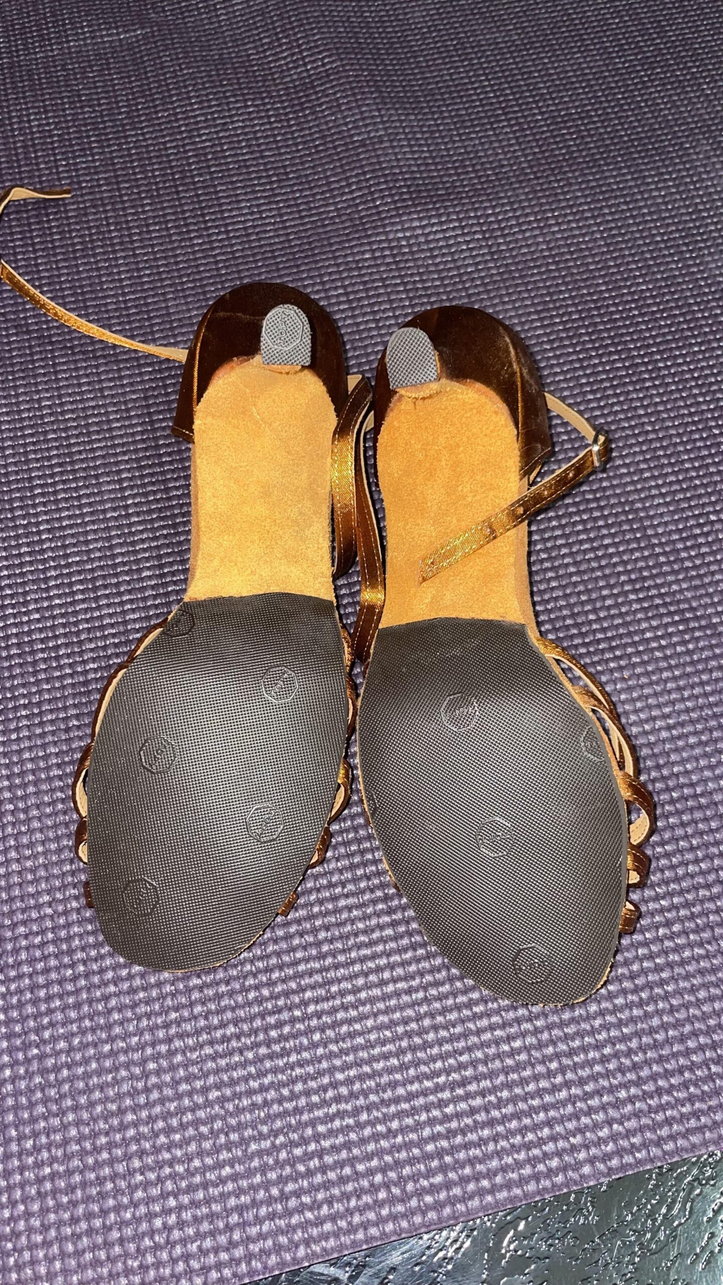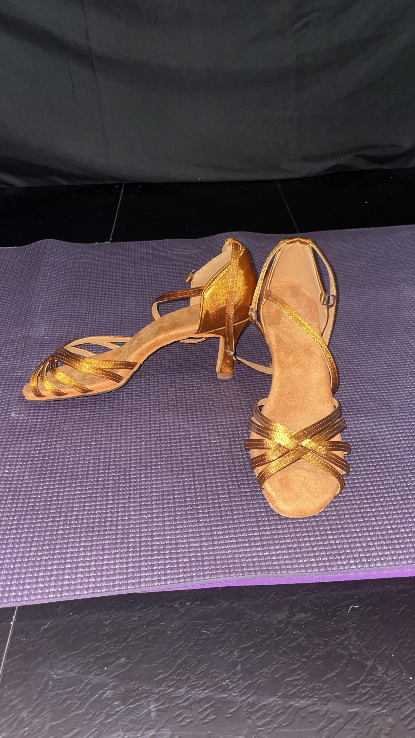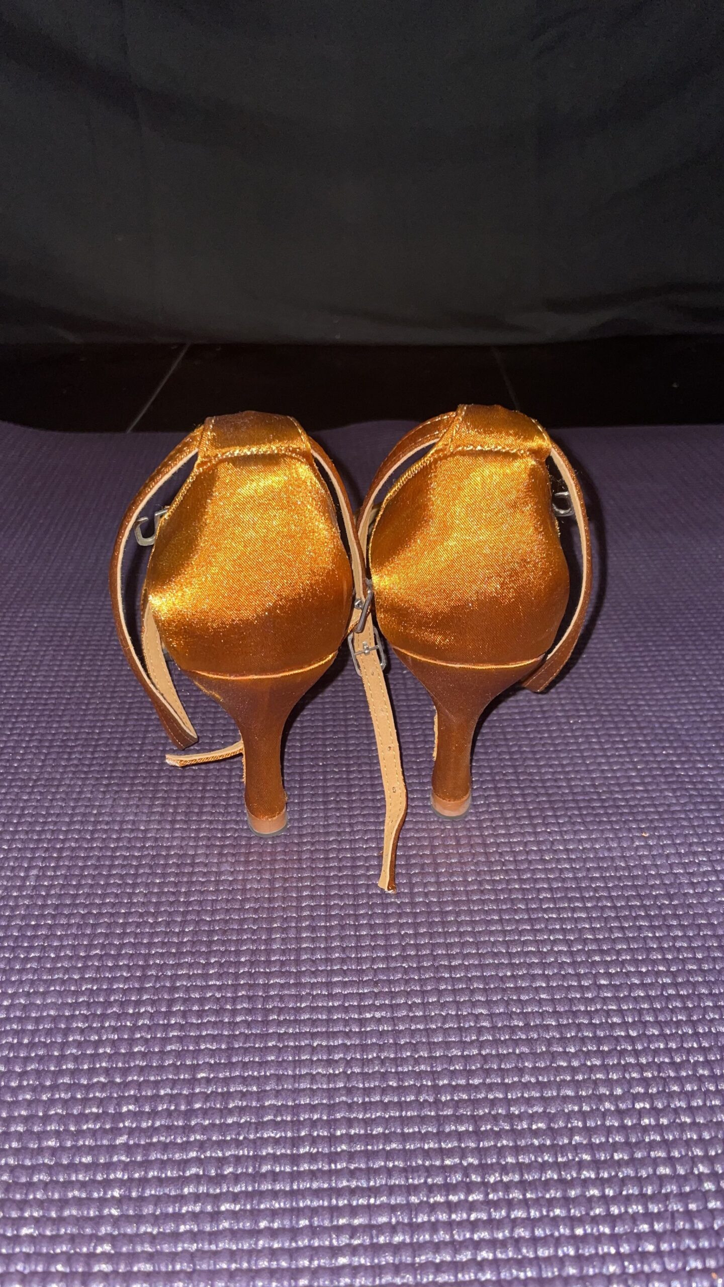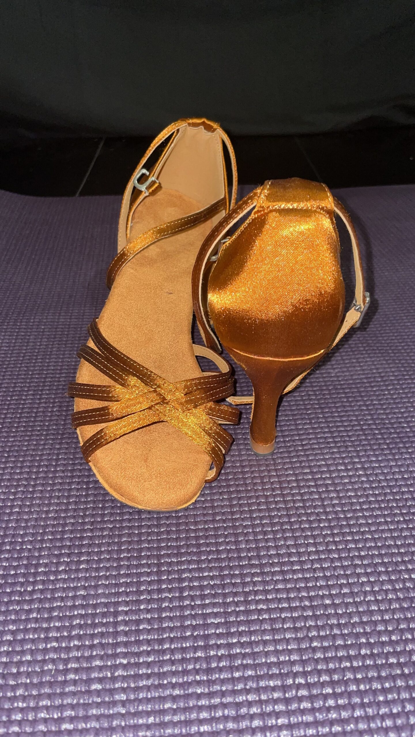 Brand new, never worn dance shoes in a beautiful bronze satin finish.